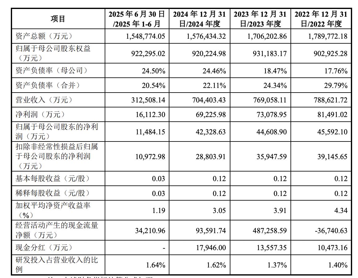 2022年-2024年及2025年上半年,中盐股份分别实现营业收入78.86亿元、76.91亿元、70.44亿元和31.25亿元,扣除非经常性损益后归属于母公司股东的净利润3.91亿元、3.59亿元、2.88亿元和1.1亿元,业绩有所下滑。综合毛利率分别为34.00%、31.19%、32.06%和30.38%。