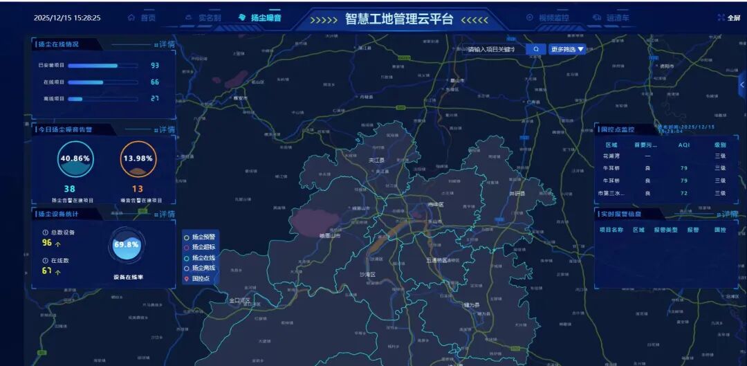 “为切实保障和提升施工现场的扬尘治理效果,由中建二局三公司承建的乐山城投青江里综合服务中心项目,持续升级项目围挡,成功达到绿色标杆工地标准。项目安装了‘智慧扬尘在线监控系统’,构建‘数据预警+主动防控+精细管理’三位一体治理体系,空气监测数据实时上传至乐山住建部门平台,通过立体监控、后台和现场数据相互印证与提醒,能够及时采取相应措施抑制扬尘。”据工地项目经理刘伟介绍,依托该监控系统,项目建立标准化处置流程。通过精准化、智能化管控,青江里综合服务中心项目扬尘管理效率大幅提升,预警处置时间平均缩短80%以上。