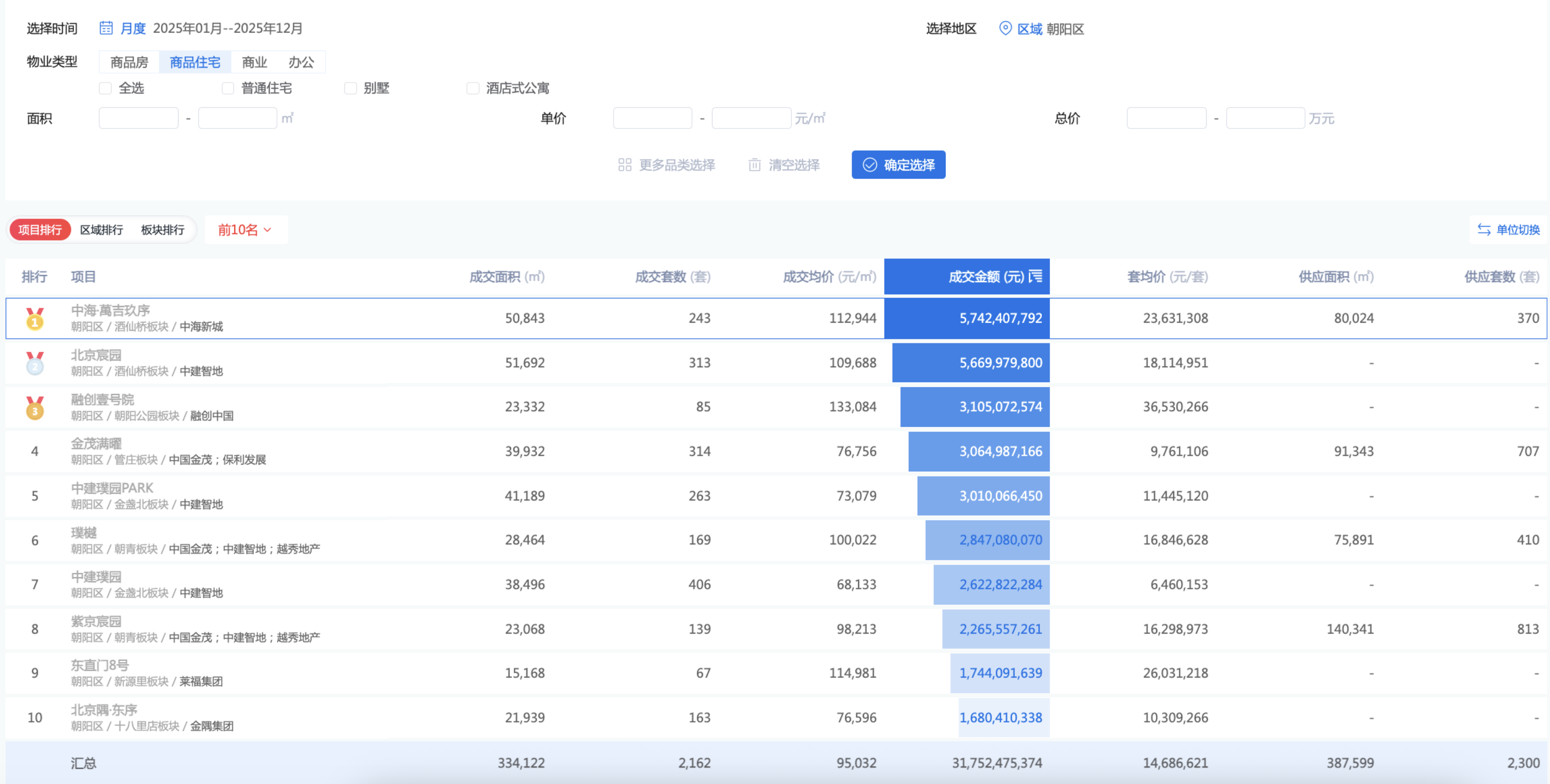 2025北京住宅操盘业绩榜:薛记肖与王野携手夺冠,中海成唯一300亿+房企