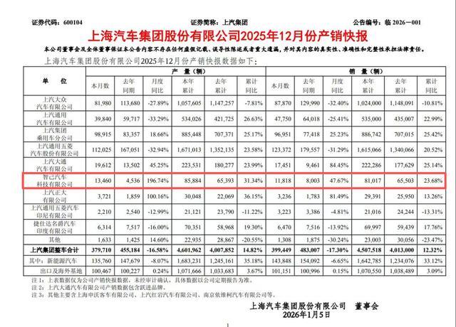据上汽集团公布的12月产销快报显示,智己汽车12月产量为13460台,销量为11818台,产销比达到87.8%,产销两旺的状态显示了智己可观的订单储备。2025年全年销量81017台,相比去年上涨23.68%。智己汽车销量稳步增长,月销连续破万,同时12月还实现了全成本口径盈利,进入新能源汽车品牌安全区域,未来市场前景向好。这也预示着,智己正式扛起上汽集团自主高端新能源品牌的大旗。
