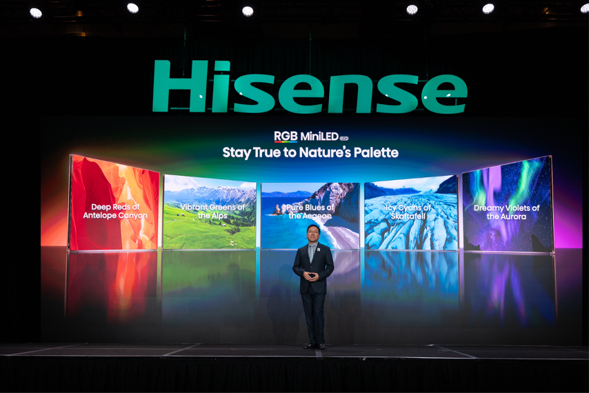 CES 2026开展前夕,海信在拉斯维加斯发布了全新一代RGB-Mini LED显示技术。作为该项技术的开创者,海信通过光源、芯片、色彩管理系统的全方位进化,将电视色域突破至110% BT.2020行业新峰值,光色同控精度提升至行业最高134bits,让电视屏幕成为“消融现实与影像的窗口”。