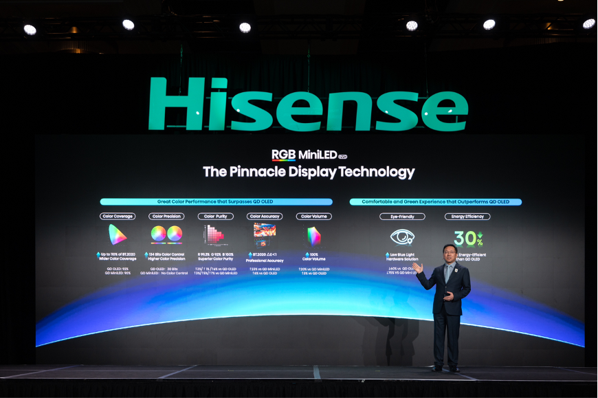 海信一年前开创并全球最先量产了RGB-Mini LED电视,这一创新技术随着全球TOP5电视品牌悉数布局,迅速成为全球高端电视的趋势热词。“RGB与Mini LED的结合,是一场颠覆性的变革。”海信视像科技总裁李炜在今年CES的展前发布会上表示,全新一代RGB-Mini LED技术带来了三大进化。