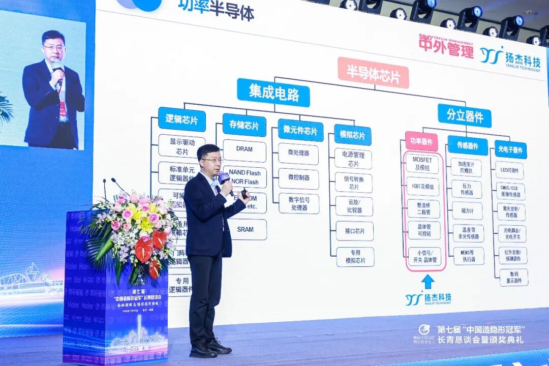大会上,第七届新科“中国造隐形冠军”、扬杰科技副董事长梁瑶发表了题为《扬杰科技“芯”路历程:三次转型、两个阶段、一条主线》的主题演讲。