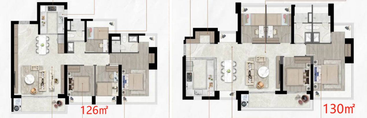 130㎡同样为4房2厅2卫设计,不过是横厅户型。