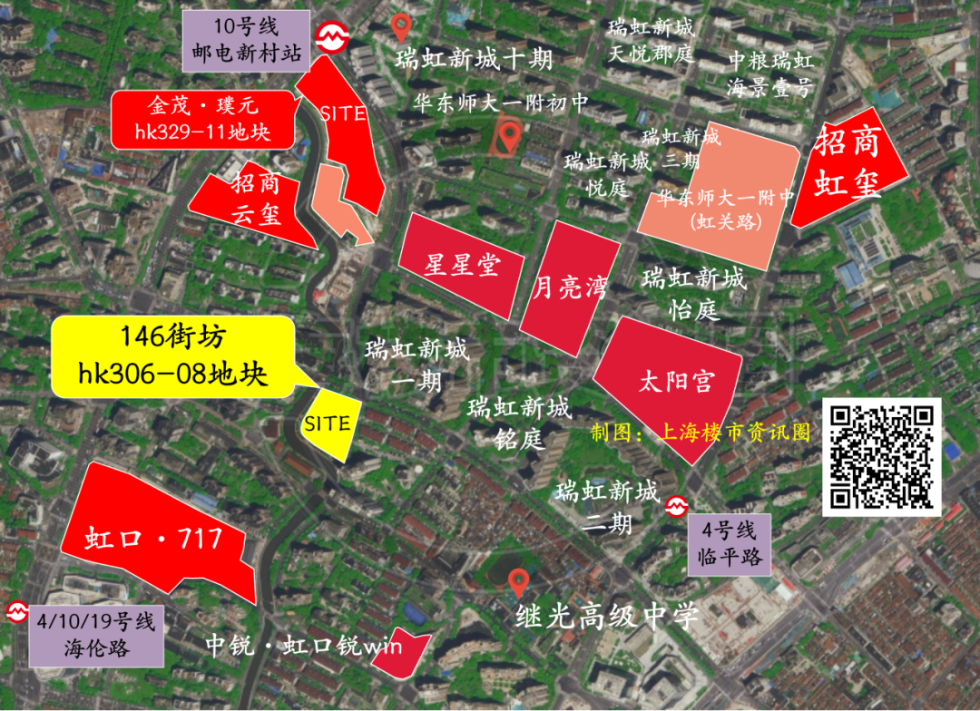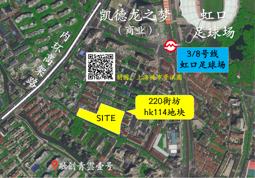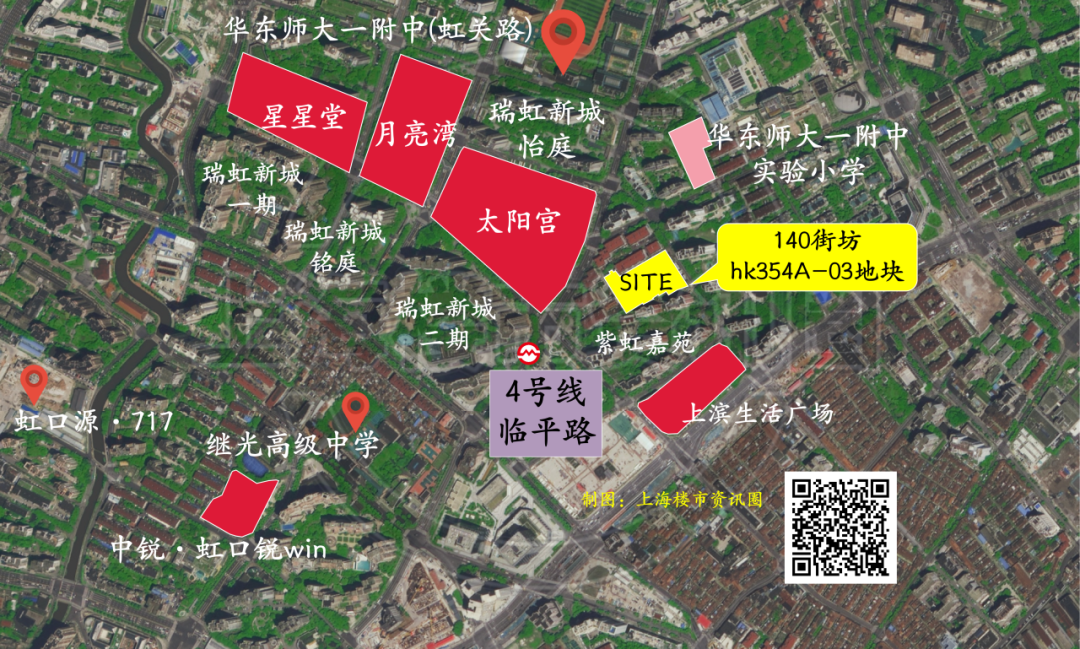 140街坊的hk354A-03地块,靠近瑞虹新城商圈,紧邻着太阳宫。