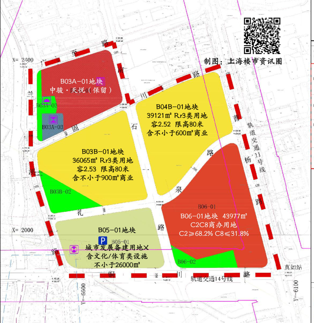 B03B-01地块,用地面积36065㎡,性质为Rr3类住宅,包含不小于900㎡商业;