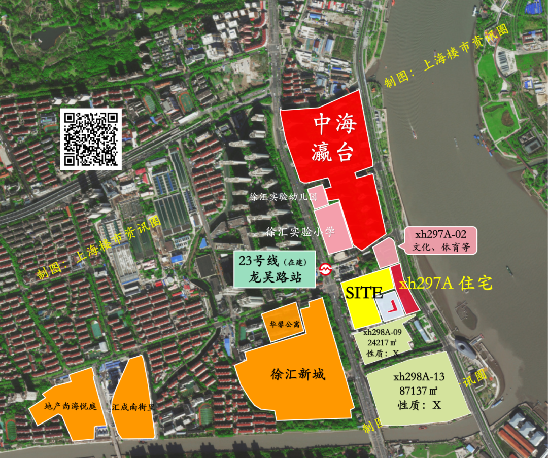 该宗地块靠近在建的23号线龙吴路站,未来高区可能会有江景视野。