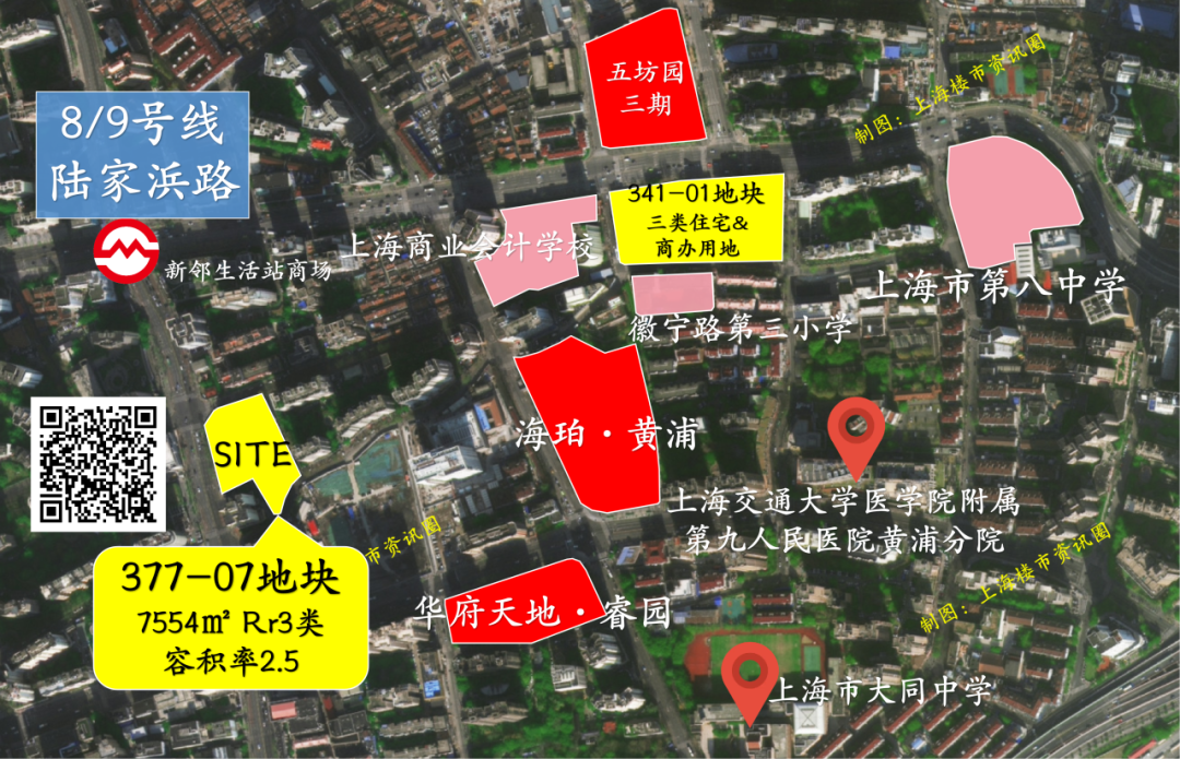 黄浦377-07地块,规划为Rr3类住宅用地,用地面积7554㎡,容积率2.5,地块内需建设300㎡的社区配套。