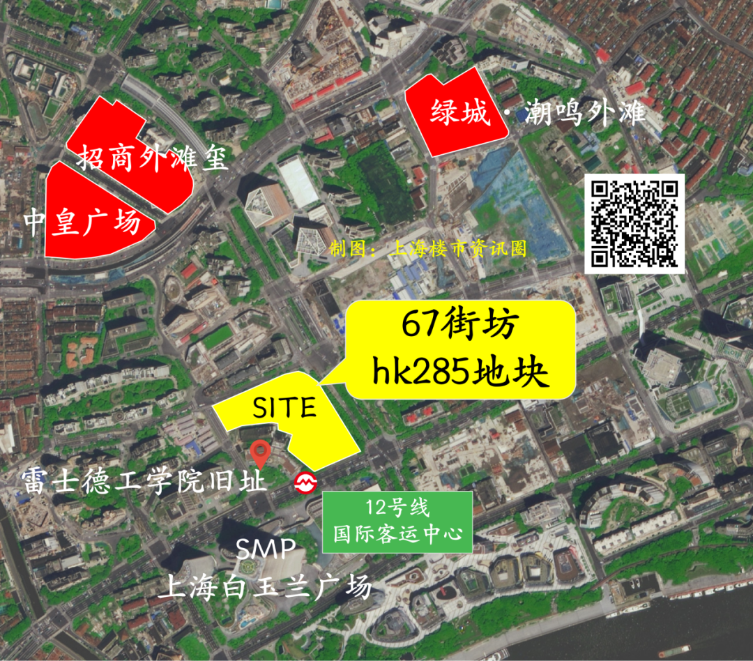 从区位上来看,地块紧邻12号线国际客运中心站,白玉兰广场、北外滩来福士均步行即达;