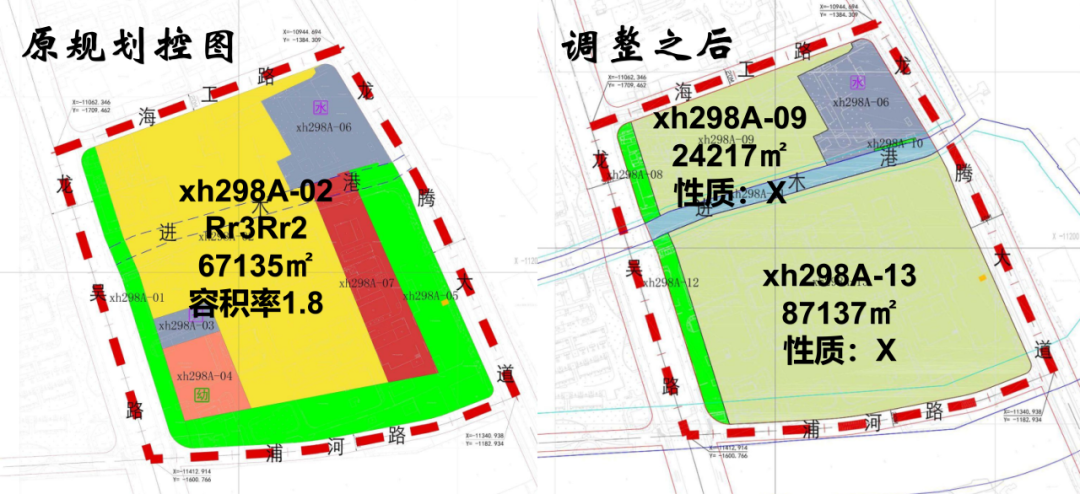 另外,在去年xh298A街坊的调整中,将原为住宅用地的xh298A-02(Rr3Rr2)地块,拆分为xh298A-09和xh298A-13地块;