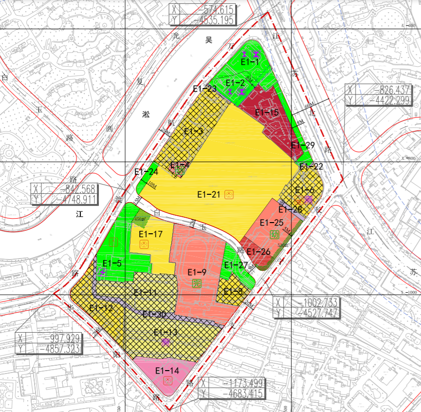 E1-21地块,Rr3类住宅,用地面积24569㎡,容积率2.67,含4000㎡社区公共服务设施;