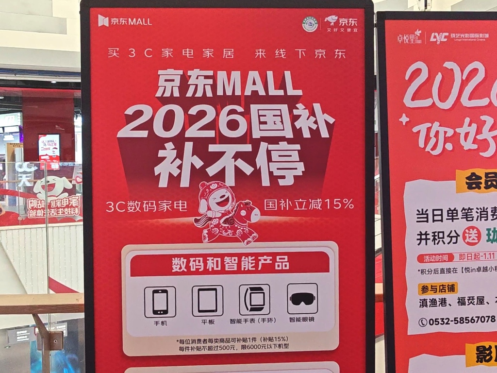 2026年元旦,新一轮国家以旧换新补贴政策全面启动,山东青岛率先实施。与往年不同的是,今年的补贴政策更加聚焦,且与零售平台的结合深度更广。京东作为线上线下全面承接本次补贴的重要平台,更是通过一系列全新升级的体验服务,完成了从消费端到供给端,从城市到农村的扩内需闭环。