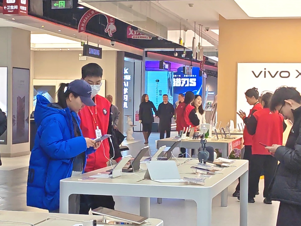 “京东会联合厂家把价格做下来,基本每月不定时都有降价,有相关品类购买意向的顾客可以经常来店里逛逛。”一位3C专区的工作人员建议,他告诉记者,自从1月1日新一轮国补落地青岛之后,店内的客流量明显增加,国补咨询量暴涨,为了接好这波“流量”,商场甚至临时增调了十几位工作人员来做支援。
