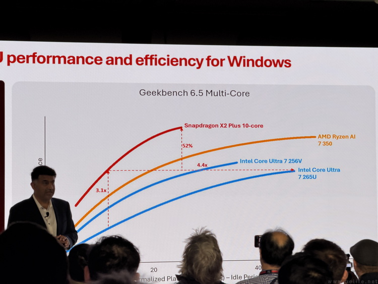 的确,无论是最初基于智能手机SoC设计的骁龙835、骁龙850,还是到后来的骁龙8cx系列,乃至上一代的骁龙X家族,它们的功耗都普遍远低于同期的x86处理器。特别是当那些x86“轻薄本”因为过高的“峰值功耗”需求,导致笔记本电脑离电性能大打折扣时,12核的“满血版”骁龙X却依然能在轻薄型笔记本电脑里实现“离电不降速”的表现。
