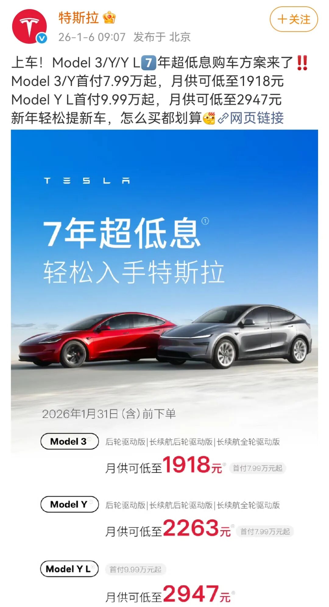 其中,Model 3与Model Y首付7.99万起,月供可低至1918元;而Model Y L首付9.99万起,月供可低至2947元。据了解,这还是特斯拉Model Y L首次推出5年0息方案。