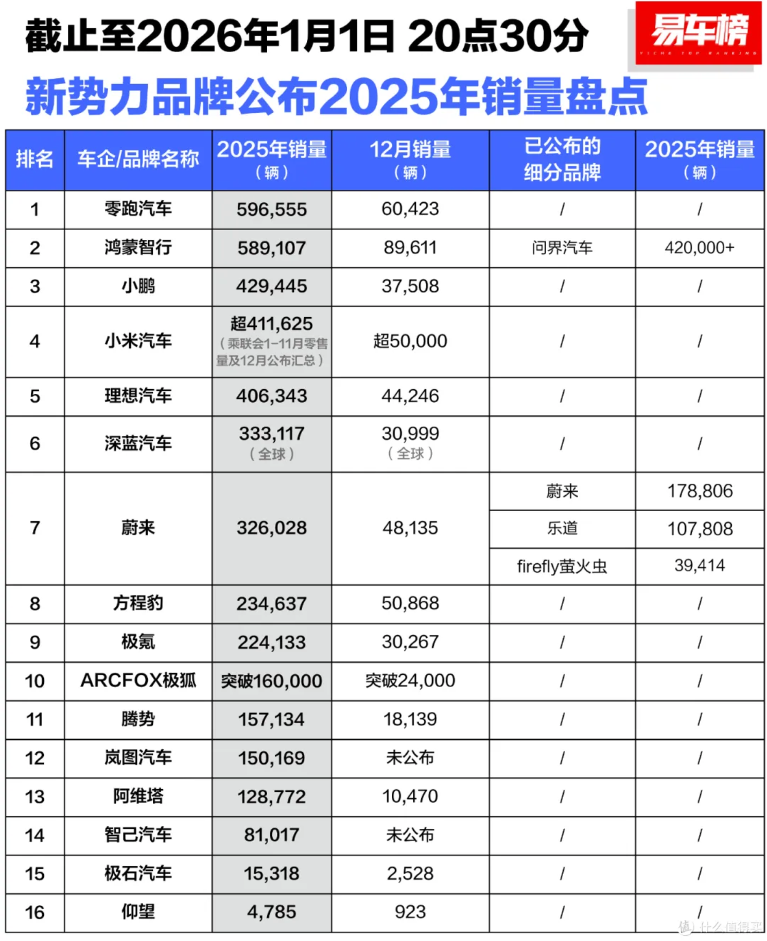 图/2025年新势力销量盘点来源/易车