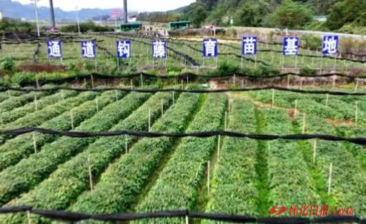 依托得天独厚的生态资源与深厚的侗医药文化底蕴,通道正全力推动中药材产业向规模化、标准化、集群化、品牌化发展。全县现有中药材种植面积17万亩,其中钩藤9万亩,建有钩藤、黑老虎等种苗繁育基地9个,市级中药材生态种植示范基地10个,中药材产地趁鲜加工厂3个,与广药集团、天地恒一公司共建设GAP基地5个,中药材产业“量质齐升”。