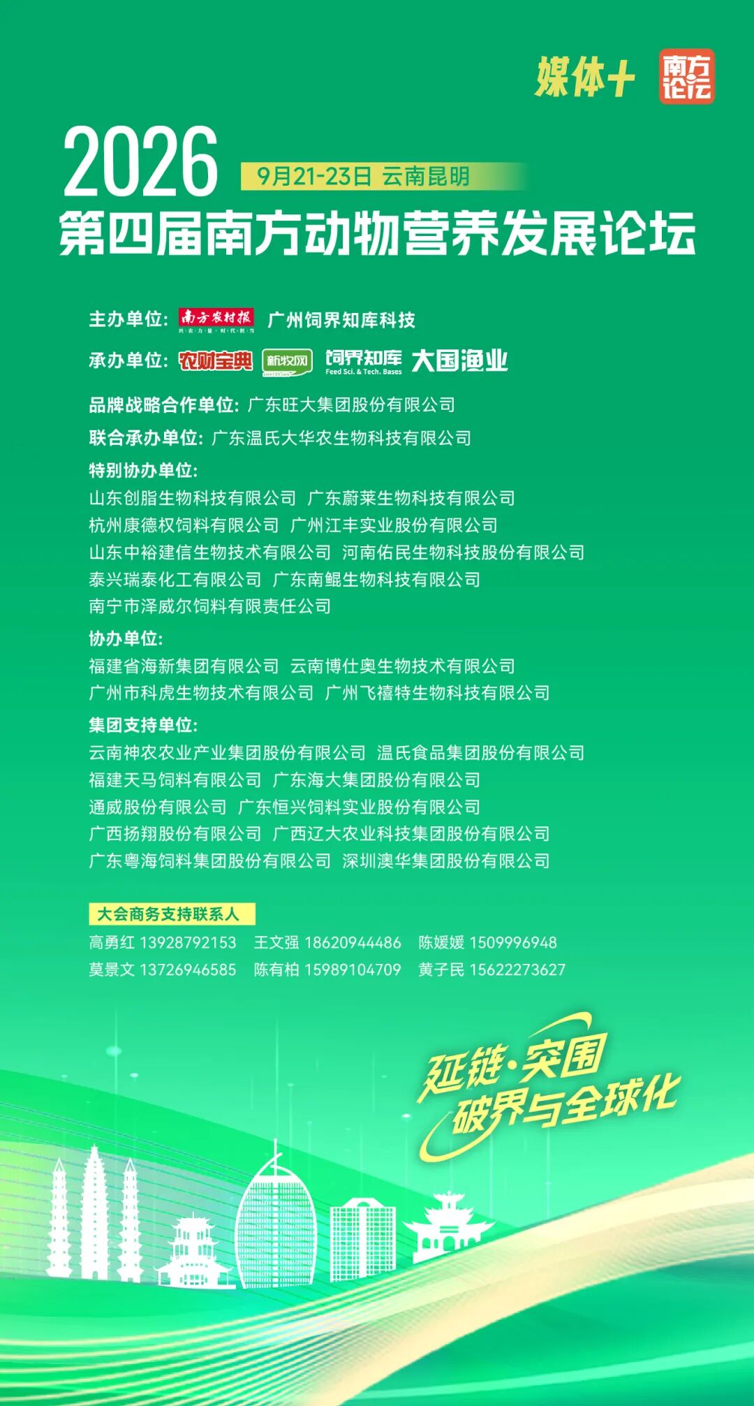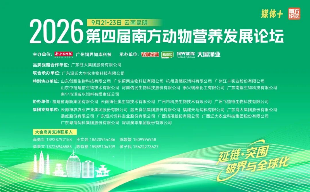 重磅!2026第四届南方动物营养发展论坛定于9月在昆明召开
