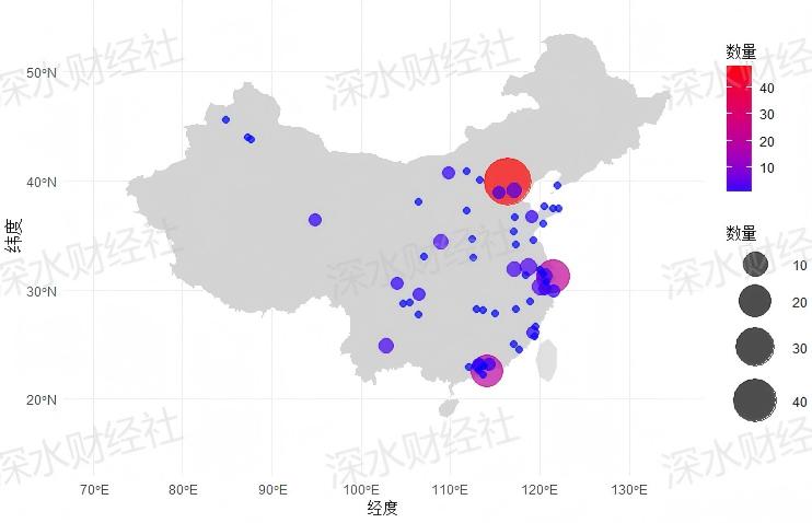 同时,西安、合肥、昆明、天津也各有3家,虽然数量不多,但增长势头明显。