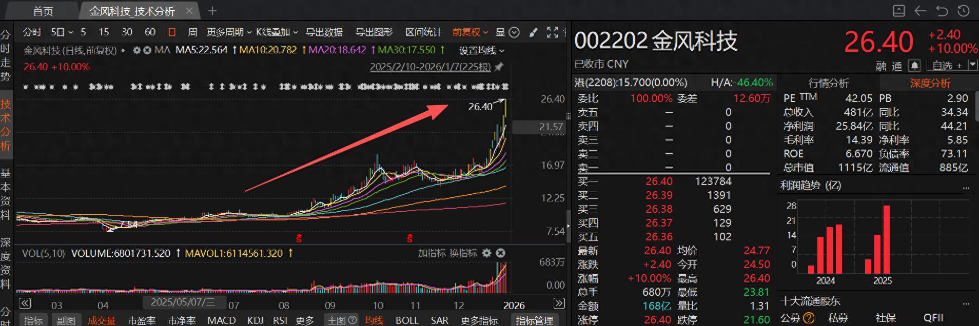 一家风电企业,因投资火箭公司,市值突破千亿大关。值得注意的是,其投资业务收益已连续两年超过主业利润,金风科技的投资眼光正在重新定义这家风电龙头的价值。金风科技今日收盘斩获2连板,股价再度创下历史新高,成为风电行业首家跻身千亿俱乐部的企业。资料显示,金风科技成立于2001年,2007年在深交所上市,2010年于港交所上市,是国内最早进入风力发电设备制造领域的企业之一,公司业务覆盖风机制造与销售、风电服务、风电场开发三大板块。