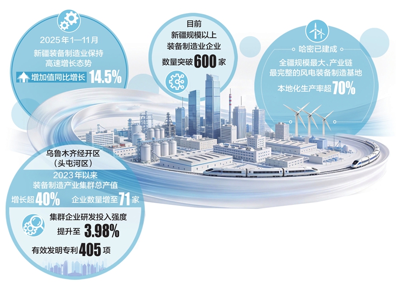 2025年1—11月,新疆装备制造业保持高速增长态势,增加值同比增长14.5%。目前,新疆规模以上装备制造业企业数量突破600家。