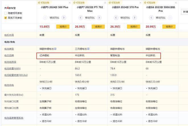 从上图可以发现,无论新款小鹏P5的亿纬锂能,还是小鹏P7的中创新航,甚至小鹏G9的智鹏制造,电池供应商都不是宁德时代。小鹏从没承认“拉黑”宁德时代,却用实际行动和宁德时代进行了分割。