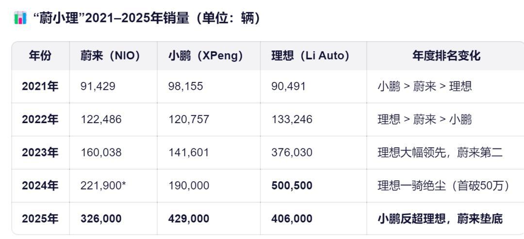 随后4年,小鹏汽车销量一飞冲天,2022年至2025年,小鹏销量分别是12.1万辆、14.2万辆、19万辆和42.9万辆,分别增长17.4%、33.8%和125.8%,尤其是2025年小鹏销量翻了一倍有余,在理想销量下滑18%和蔚来增长46.8%的竞争对手表现中,小鹏表现可谓优异。