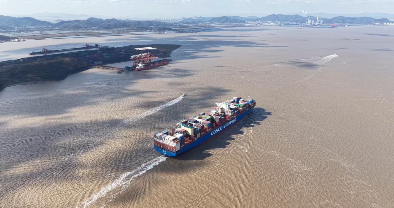 全球唯一可同时靠泊接卸两艘40万吨最大矿船的鼠浪湖矿石中转码头实现满负荷高效运营,已成为宁波舟山港吞吐能力的核心支柱。条帚门航道30万吨级扩建工程试通航,使核心港区迈入“双通道”时代,超大型船舶通行能力提升50%以上,20万吨级全球最大集装箱船可全天候通航,30万吨级超大型油轮得以高效候潮进出,大宗商品与集装箱运输的效率以及港口通航韧性得到显著提升。
