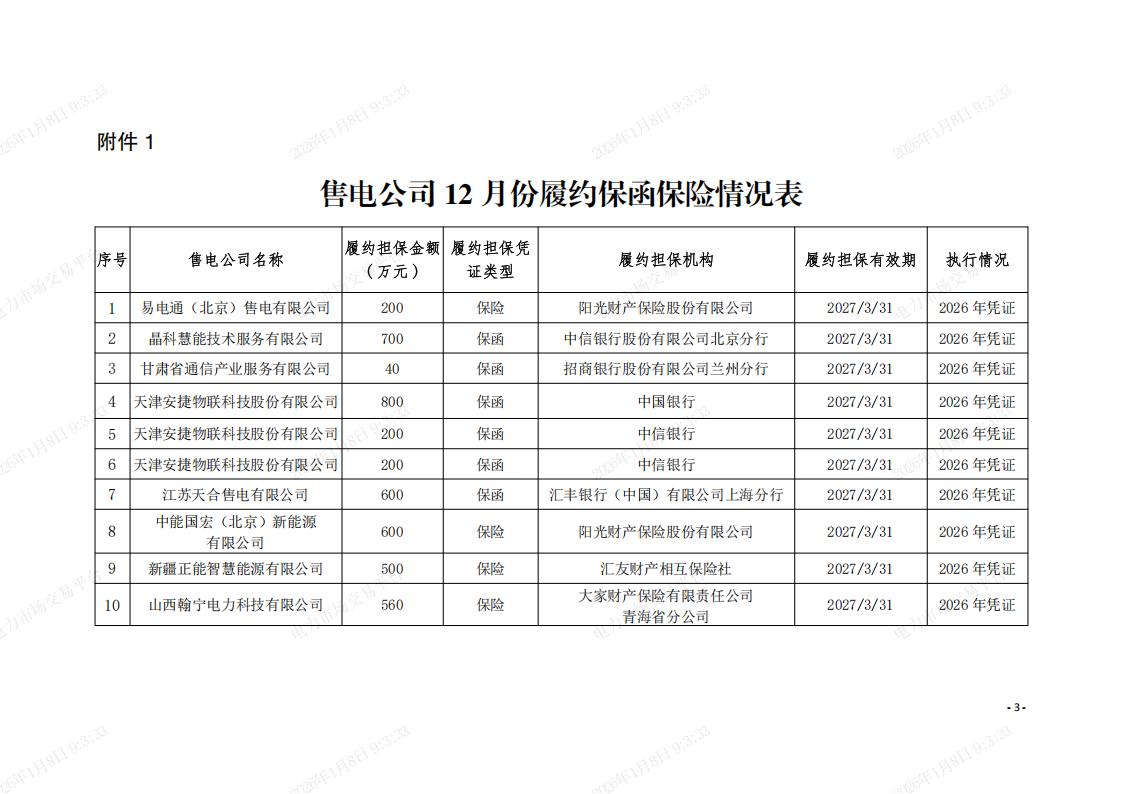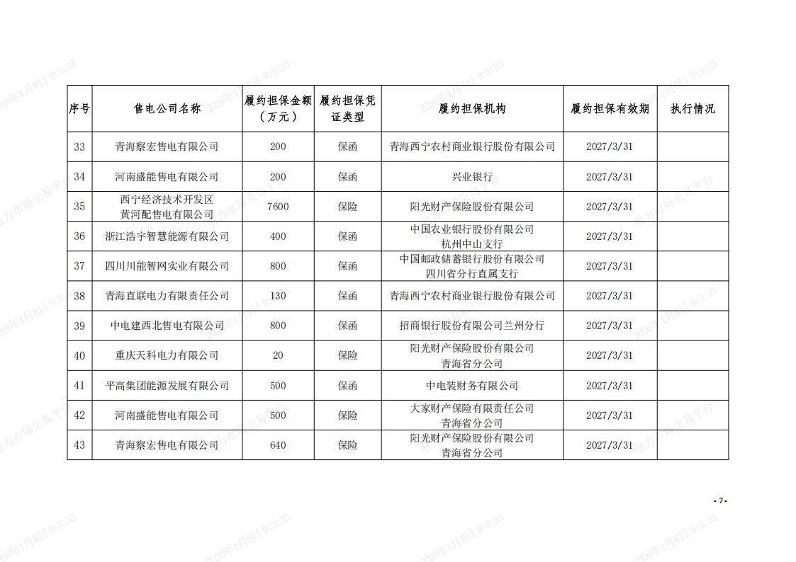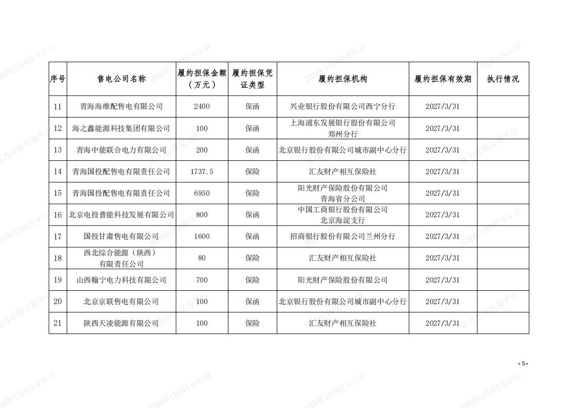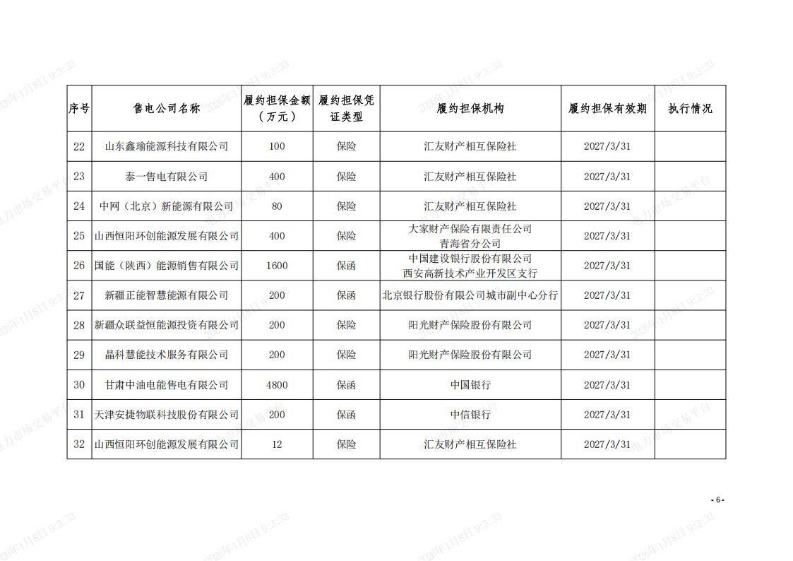 青海2025年12月及拟参与2026年电力市场售电公司履约保函保险情况
