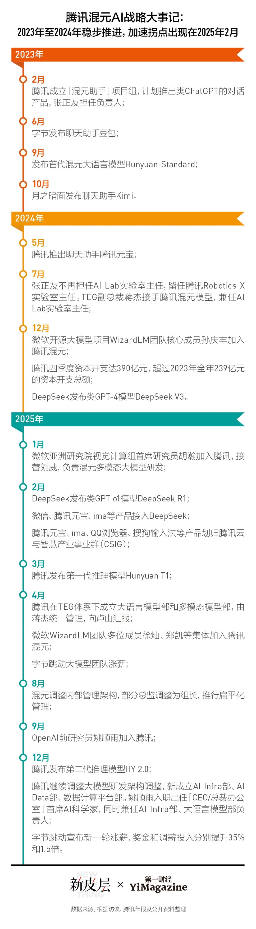多位接近腾讯的人士对「新皮层」称,腾讯大概2024年年底就开始大规模对外招募基础模型相关的人才,并启动一系列组织架构调整。2025年9月姚顺雨的加入加速了这一进程。