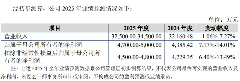 云眼视界预计2025年实现营业收入3.25亿元-3.45亿元,较上年增长1.06%-7.27%;归属于母公司所有者的净利润为4700万元-5000万元,较上年增长7.17%-14.01%;扣除非经常性损益后归属于母公司所有者的净利润为4500万元-4800万元,较上年增长6.40%-13.49%,主要系公司2025年营业收入和综合毛利率提高所致。
