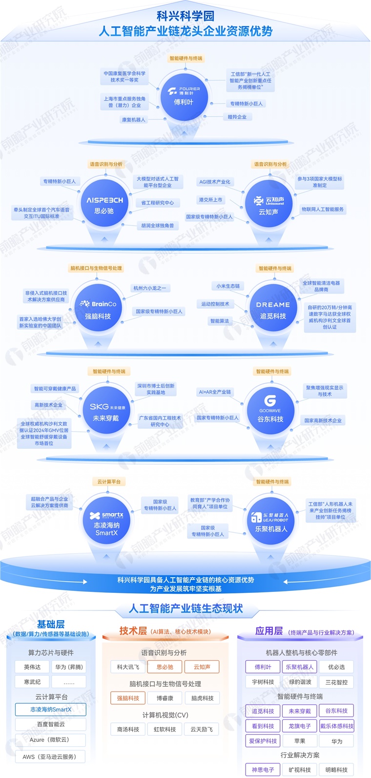 从底层核心技术支撑的半导体与芯片企业(如芯洲科技、芯智科技、芯启航、摩尔线程、欧冶半导体等),到赋能百业、提供智能化核心的人工智能企业(如思必驰、云知声、强脑科技、傅利叶、乐聚机器人等),再到将前沿技术应用于实体经济的增强现实(AR)、智能硬件与消费电子企业(如谷东科技、未来穿戴、追觅科技、安声科技、看到科技、戴乐体感科技、龙旗电子、纵贯无限科技等),以及驱动绿色变革的新能源与高端制造企业(如铭利达、易储能源、多玛凯拔、艾罗能源、力高新能源、长城汽车、东源音响、矩形科技、形朗科技、满坤科技、住井科技、泰永科技、天山电子、麦博韦尔、深圳拜波赫等),还有支撑数字化基础设施的云计算与信息服务企业(如科立讯、联软科技、亿达信息、他趣信息、神思电子、儒意景秀、网宿科技、爱捷云科技、互盟科技、斯维尔、天维思、中电金信、小鹅通、中国铁塔、理想动力)、致力于生命健康与医药创新的生物医药企业(如绿叶制药、科兴制药、诺唯赞等)以及在精细化工领域精耕细作的综合性龙头(如新琪安等)——它们共同构成了从基础硬件、关键技术到行业应用的完整产业链闭环,展现了科技创新的多元生态与强劲动能。