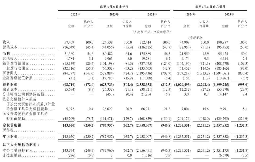 智谱AI在2025年上半年营收为1.91亿元,上年同期为4491万元;智谱AI目前仍处于亏损状态,主要是研发费用高达16亿元。