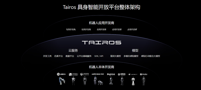 而腾讯Robotics X实验室与福田实验室在2025年7月联合发布的Tairos(钛螺丝)具身智能大模型,正为破解这一行业困局提供了关键方案。作为聚焦具身大模型及相关开发工具的核心产品,Tairos通过SDK和云服务的方式面向机器人行业开放,致力于为机器人本体与应用开发商补齐关键软件能力。Tairos如同为各类机器人装上了高效运转的"智能大脑",让机器人不再是被动执行指令的机械体,而是拥有具备感知世界、规划任务以及自主决策等核心能力的智能体,从而有效解决具身大模型能力与机器人本体结合的难题,完成从复杂任务分解到具体执行的完整闭环,为机器人在多场景的灵活应用奠定了坚实基础。