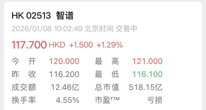 1月8日,智谱正式在港交所主板挂牌上市,拿下全球大模型第一股。首日开盘价报120港元,较发行价116.2港元上涨约3.27%,市值突破528亿港元。截至发文,股票价格为117.7港元/每股。