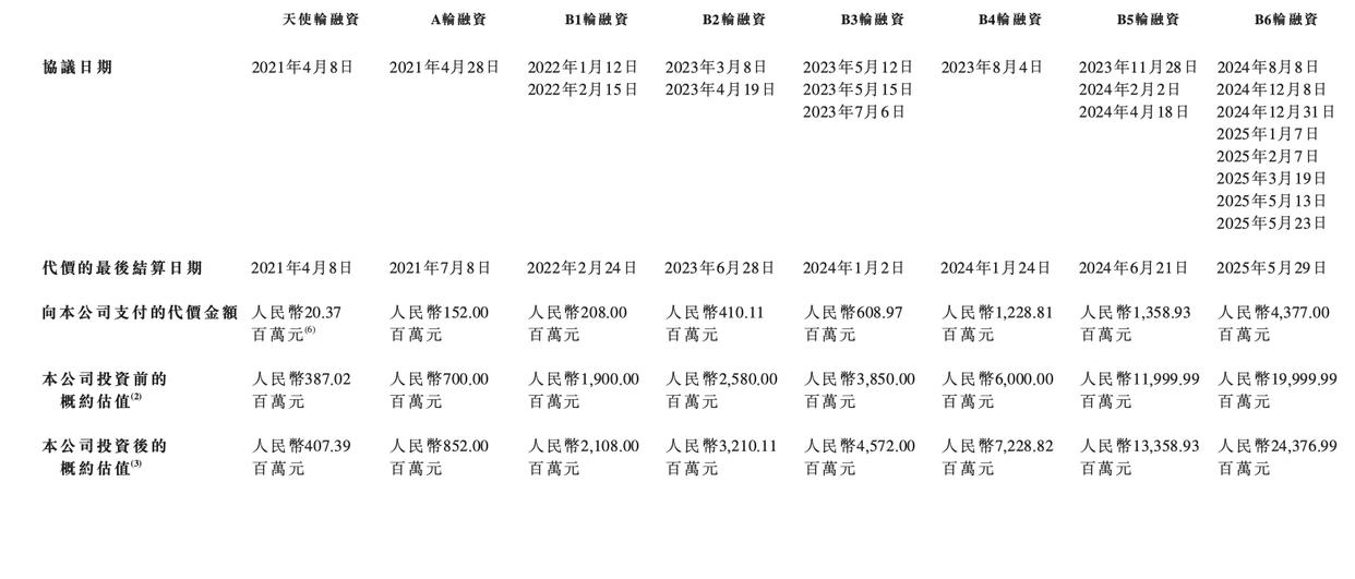 通过该招股书,外界得以获悉智谱近三年来的融资有多猛:B2到B5轮融资集中发生在2023年,横跨2024-2025年的B5轮融资,以及2025年的B6轮融资,前前后后均有多达5次的“增补”,机构可谓削尖了脑袋往里挤。最终,智谱的B4轮融资约12.29亿元,B5轮融资约13.59亿元,B6轮融资约43.77亿元。