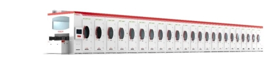 近两年公司技术创新成果显著:2026年1月,正式发布“飞毛腿”超高速测试分选机(CSFX-4L-2L-4-120),集成正背颜色检测、IV/EL/PL检测,支持2-4片同时测试,适配TOPCON/BC工艺的高速分档需求;2025年12月,取得“边框规整装配机构”专利(CN223617605U),通过自动化调整光伏板边框位置,缩短机械节拍提升生产效率;2024年10月,子公司无锡松拓交付二代超大产能光伏电池湿法清洗设备,产能≥18000片/小时,适用于光伏TOPCON、XBC、HJT等电池工艺,尺寸兼容方片、矩形片及半片工艺,降低化学品单耗与能耗,为N型电池大规模量产提供关键设备支撑。