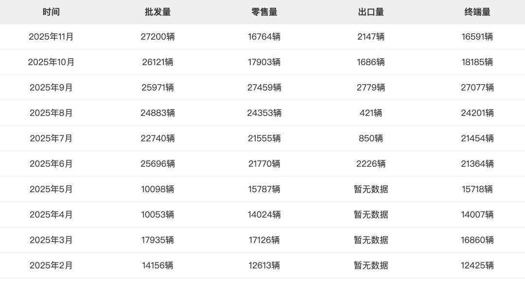 数据显示,自上市以来,海狮06销量为129,804辆,其中2025年11月销量16,764辆。