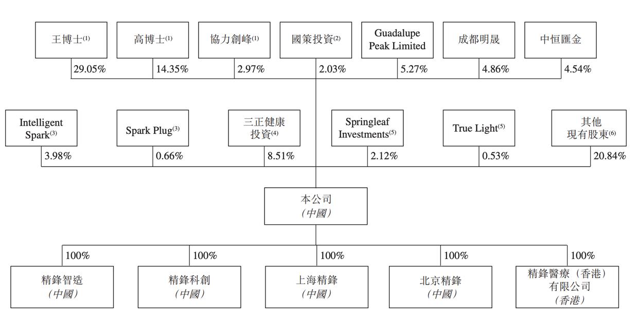 IPO前,精锋医疗创始人王建辰和高元倩分贝持股29.05%、14.35%,成都明晟持股为4.86%,中恒汇金持股为4.54%,苏州君联持股为3.47%,HongShan Growth(红杉中国)持股为1.19%。