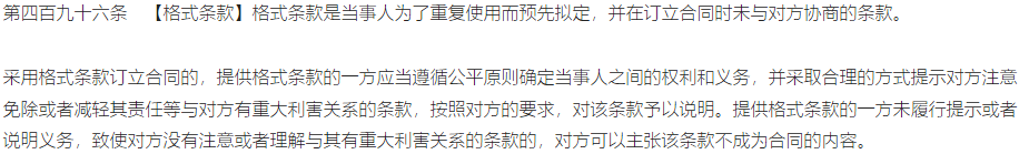 陕西国台查阅存档的保单后果然发现,保单背面最上方印着几行黑体字,其中一条即为“其他事故每次赔偿限额100万”。保单上的条款,一般都是保司为重复使用而预先拟定、且订立时未与投保人协商,在法律上属于格式条款。而《民法典》第496条规定,提供格式条款的一方(即保司)应尽到提示与说明的合同义务,对免除/减轻己方责任、限制对方权利等重大利害条款,应以合理方式提示(如字体加粗),并按对方(即陕西国台)要求说明;否则对方可主张该条款不成为合同内容(不产生约束力)。而且格式条款提供方还需承担已尽提示/说明义务的举证责任。