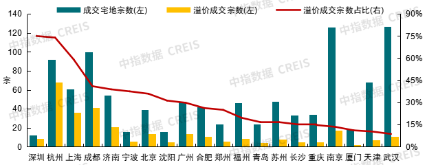 图:22个重点城市2025年宅地溢价成交情况