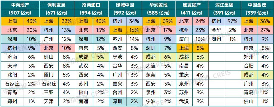 表:2025年重点房企拿地前十城市占比