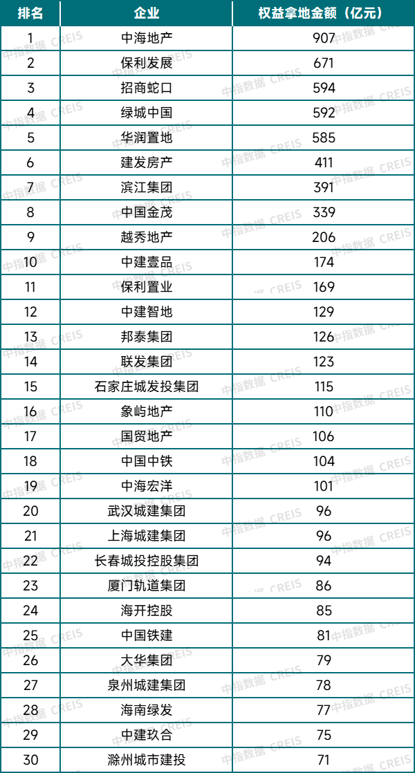 表:2025年权益拿地金额TOP30企业