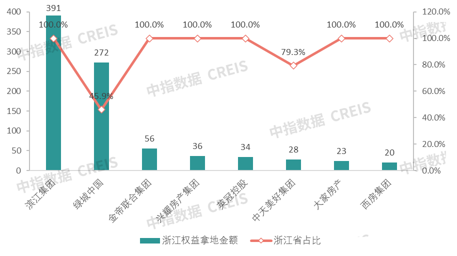 图:典型浙系本土房企在浙江权益拿地金额与拿地占比