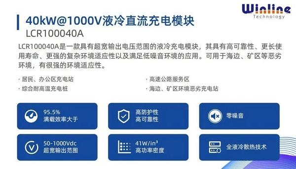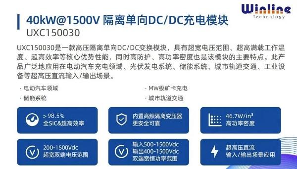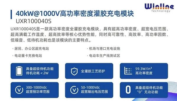 UXR100040S是一款高功率密度全灌胶充电模块,具有超高功率密度、超宽电压范围、超高满载工作温度、超高效率等核心优势,同时搭载超级待机功能和“0”无功功能,能自动降低关机状态下的无功损耗,实现待机功耗<2W。其应用场景包括超充充电站、电动重卡充换电站、机场与港口充电设备、电动车生产线测试区等。