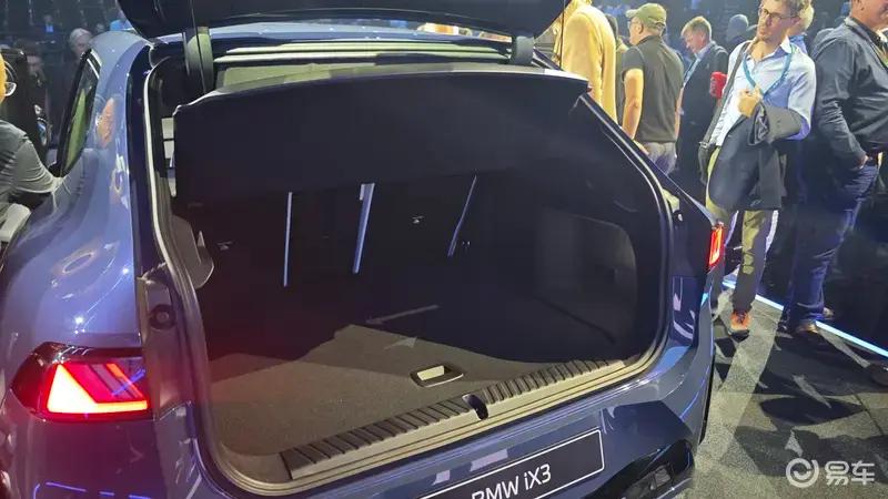 尾部方面,新世代BMW iX3同样采用最新设计语言,全新造型的尾灯组是点睛之笔,但新车并未采用时下流行的贯穿设计,中间被宝马LOGO进行了分离。动感的后包围配合顶部的扰流板,为尾部增加了不少视觉冲击力。此外,新车还配备了前备箱。