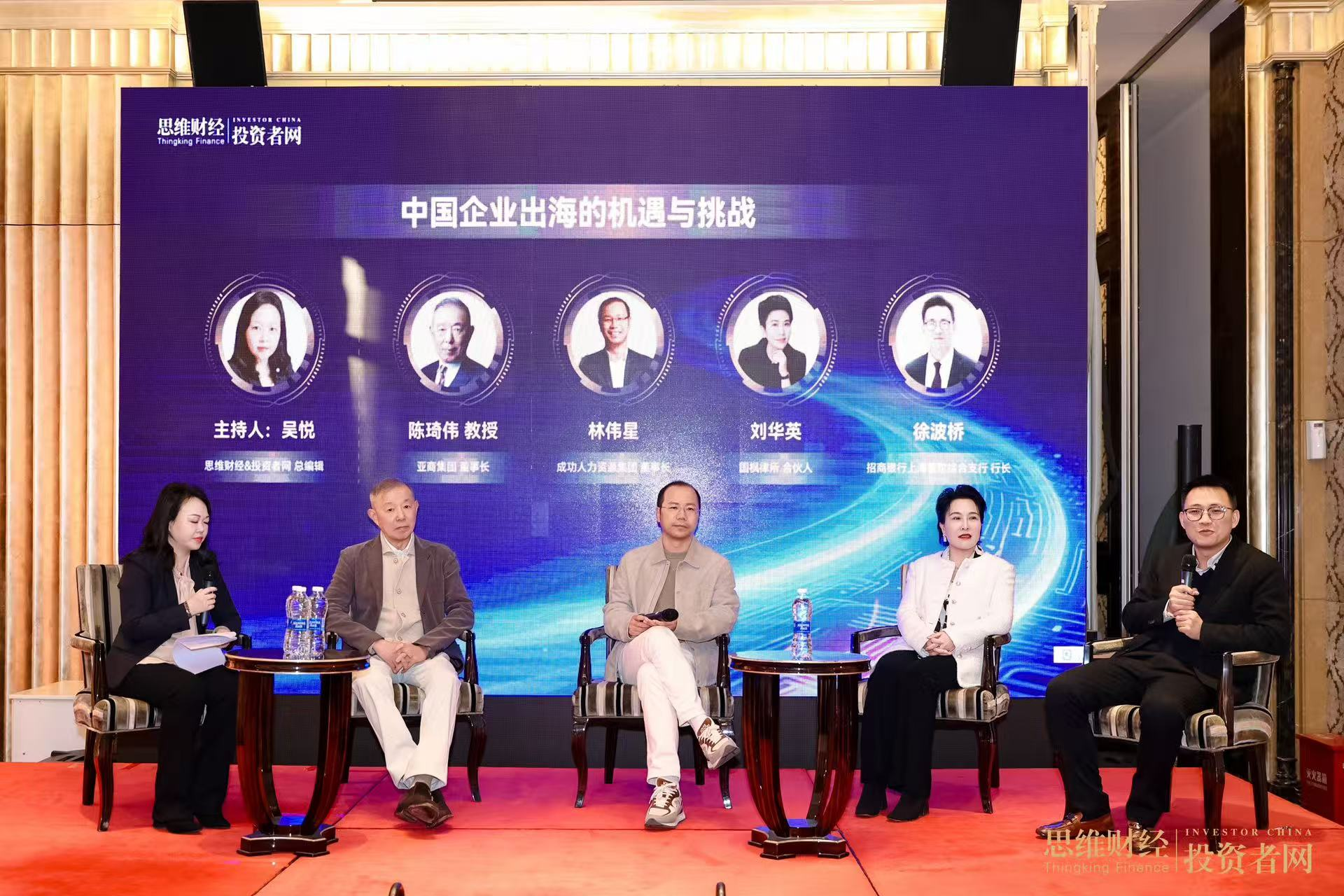 第二场圆桌论坛以“中国企业出海的机遇与挑战”为核心,由思维财经&投资者网总编辑吴悦主持,招商银行上海普陀支行行长徐波桥、亚商集团创始人兼董事长陈琦伟教授、成功人力资源集团董事长林伟星、国枫律所合伙人刘华英四位嘉宾,分别从跨境金融、资本投资、人力资本、合规风控四大维度,聚焦企业从“产品出海”向“制造出海”“生态圈融入”转型的核心命题。