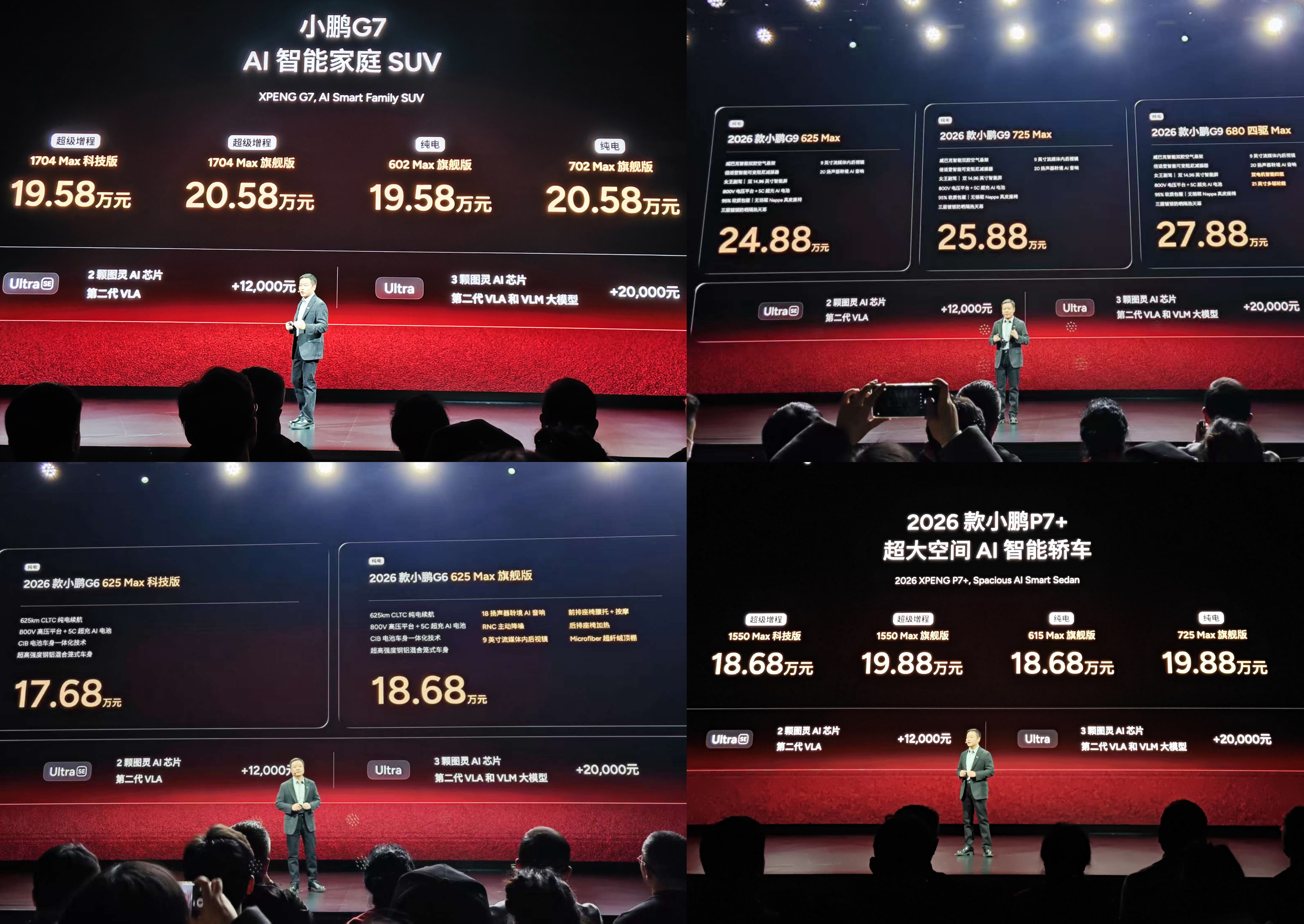 最低17.68万!小鹏发布四款新车,全员长续航换强芯,打响2026出海总攻