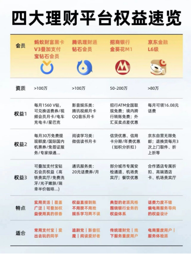国内四家理财平台百万资产用户主要权益梳理