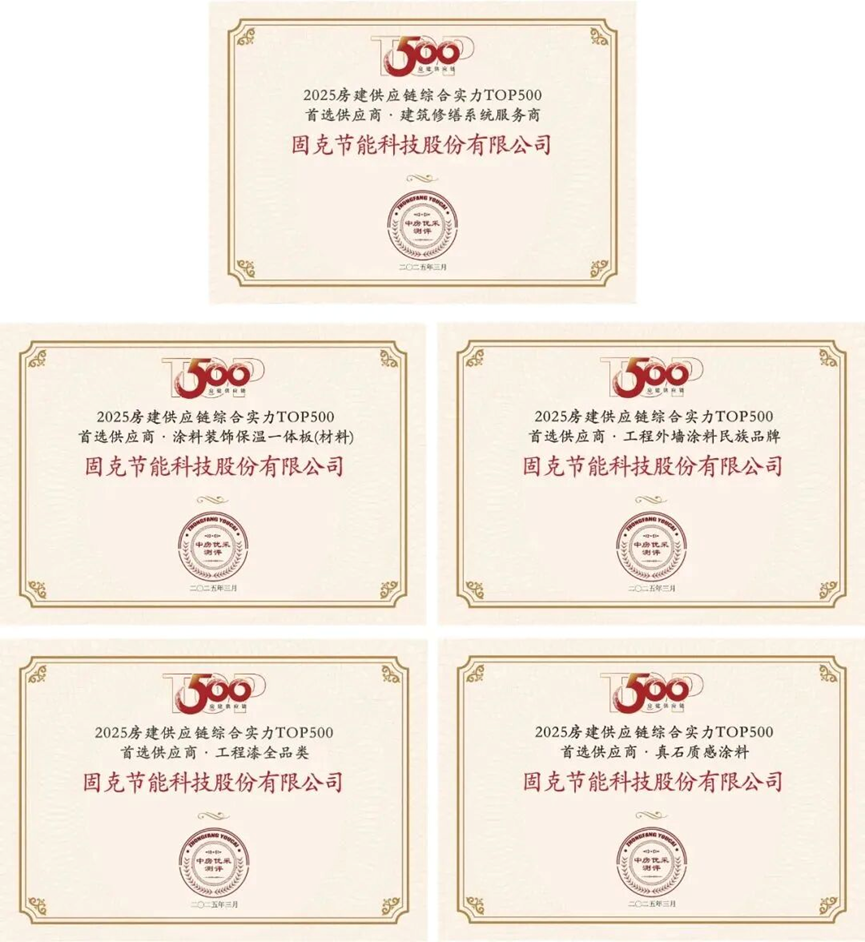 中外涂料网注意到,固克节能已连续13年蝉联“中国房地产开发企业综合实力TOP500首选供应商”涂料类榜单,并在多个细分领域稳居行业前列。这份来自市场的长期认可,是其深厚品牌积淀与稳定交付能力的明证,也成为其与央企平等对话、深度合作的“信用资产”。